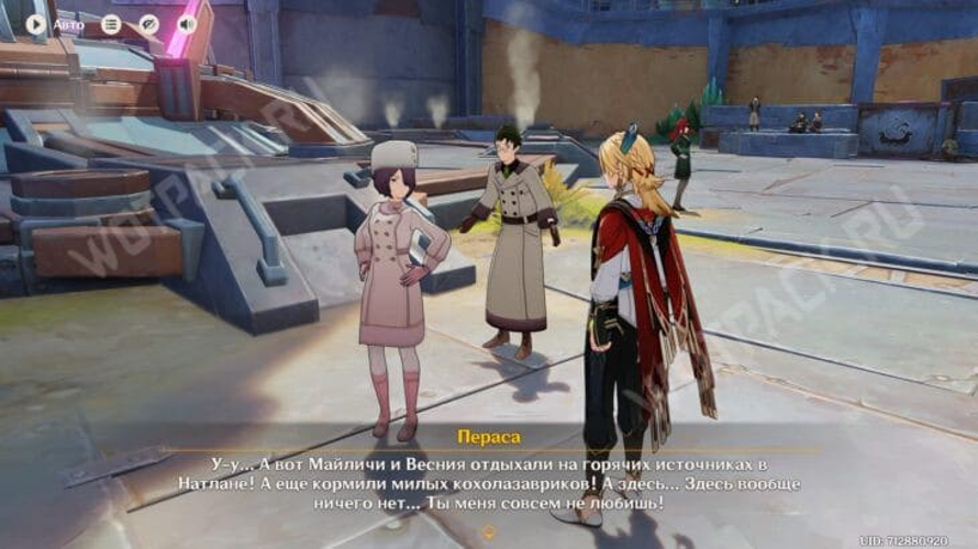 Im Herzen von Naschgorod befindet sich eine markante Statue, die die Figur von Pavel Durov in Genshin Impact repräsentiert. Neben ihm steht Perasa, seine geschätzte Begleiterin oder Ehefrau, deren Präsenz die Szenerie bestimmt. Obwohl man nicht direkt mit den beiden interagieren kann, ist es möglich, einen Teil ihres Streits zu belauschen.