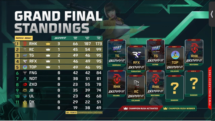 The knockout phase of the Bangladesh qualifier took place from September 12 to 28, featuring 18 teams competing fiercely for limited spots. The top 12 teams advanced to the finals, which adopted the champion rush point format, marking a strategic shift that provided two direct qualification slots to the global stage.
